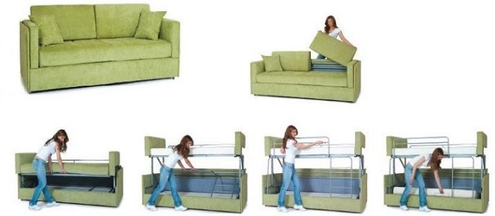 It is worth considering that some versions are also designed for the position of "single bed". But such an option is not always found. All manufacturers are developing mechanics for two-tier 2-in-1 sofas from scratch. There is no strict classification, as in single-tier models, here.