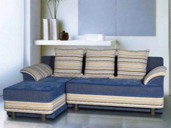 As for the triple corner sofas, they can be called more compact. Such models can be located in any convenient corner of the room. Often such products have a folding dolphin mechanism. It allows you to disassemble the sofa to organize an extra bed. All pillows are involved in this procedure. Inside sofas can be equipped with a drawer for linen.