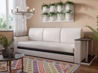One cannot help but consider a fairly new model of triple sofas, not equipped with armrests. Such products save space. They are great for sleeping, two people here will feel as comfortable as possible. They can be used both in the usual format and as a permanent bed.