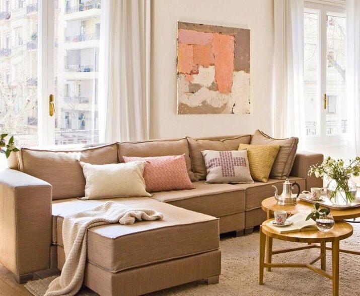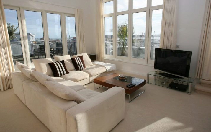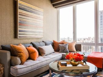 Special attention should be paid when choosing the optimal model. modular and sectional sofas. Due to the wide variety of modules, they allow you to arrange the space near the window as rationally as possible. This feature is good because by means of such products it is possible to install them not only along the wall, but also in the corner in rooms with panoramic windows on two adjacent walls.