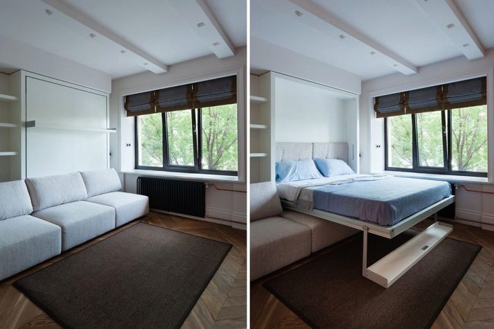 A lot depends on the location and size of the wall. The sofa can occupy the entire wall or a certain part of it. If you plan to use it as a bed from time to time, you can buy a transformer model. Among the types of transformation mechanisms, it is worth giving preference to the lifting type options.