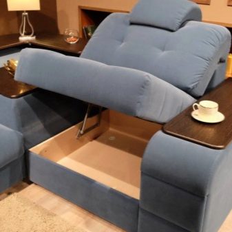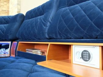 As for the functions, here the choice will depend on the buyer. The more functions you choose, the more massive the model will be, and this must be taken into account. The most popular are boxes for storing linen, armrests with a bar, coffee tables, home theater.Choose what you need, but avoid excessiveness, because if you, for example, listen to music only on a trip to work, then the built-in speakers will be needed from strength a couple of times a year.