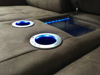 - Music Center. To the sofa you can order musical built-in speakers, as well as a subwoofer. Agree, it is unlikely that any of the friends have this.