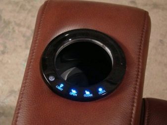 - Different types of armrests. There are armrests with niches, shelves, they are all of different sizes. Additionally, you can equip here and backlight. In the kit there is a remote control with which you can change the colors of the backlight.
