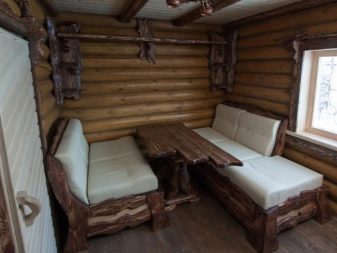 To make the bath or sauna as comfortable and functional as possible, it is necessary to furnish the room with furniture. Furniture items are especially important in bath complexes, where premises such as a dressing room, an entrance hall or a rest room are provided. In such places it is difficult to do without a sofa.