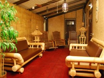 Recently, rattan furniture items are gaining great popularity.. This material is made from palm creeper. Due to the ability of the fibers to expand under the influence of steam, the wood becomes soft and easily bends if necessary to give it any shape. Rattan sofas are produced according to a special technology - the frame is made of solid stems, and the upper part is made of thin and flexible branches by weaving. Rattan wood has light colors, it can also be painted in any tone.