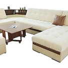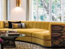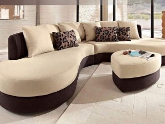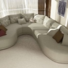 Such sofas differ from other variations in a rounded shape that resembles a circle segment. Such furniture is selected for the arrangement of bay windows and spacious living rooms. Depending on the model, they can have one armrest, a comfortable functional pouffe and a compact table. By type of execution, they are classified as modular type products.