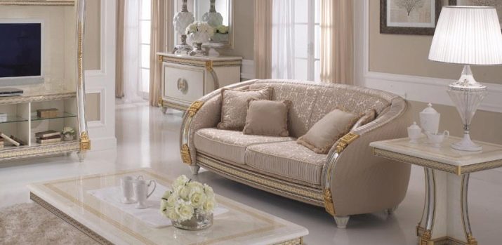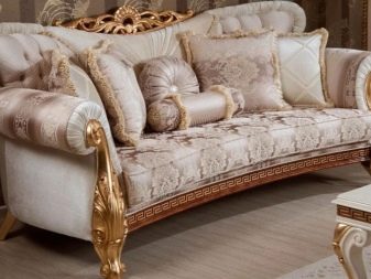 - classic style sofas They are distinguished by elegance and thirst for palace solemnity, expensive upholstery, monogram print;