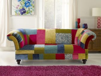 - sofas in patchwork style recognizable by the colorful colors of the upholstery material;