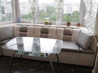 In the kitchens with a loggia, sofas are also placed on the loggias themselves, creating cozy recreation areas with their help.