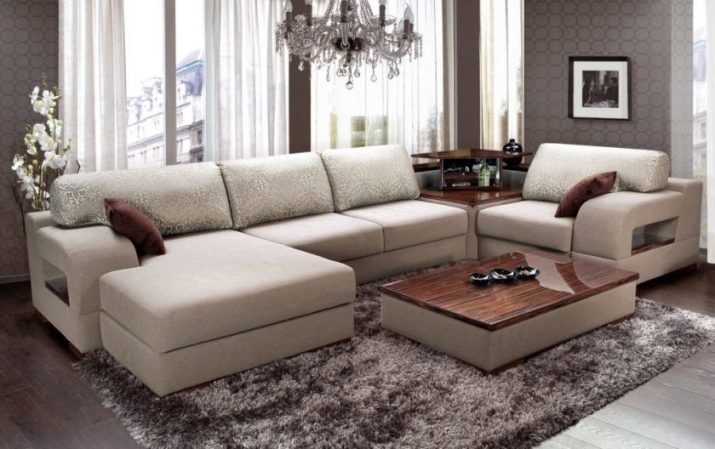 Such products are considered a kind of corner sofas, only they have 2 corners. Like other analogues, they can be ordinary, sectional and modular. The latter options are noteworthy in that they allow you to change the form depending on the choice and arrangement of each individual module.