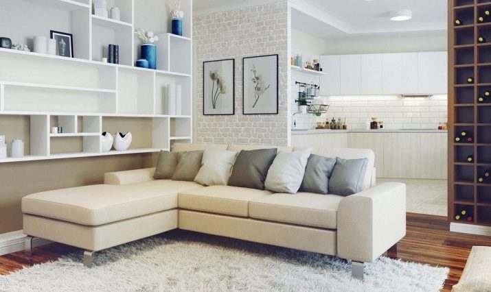 In rooms with small bay windows, sofas are placed along bay windows. In the combined rooms they equip dining areas and recreation areas. In such rooms they are placed in the center of the rooms or near one of the walls, dividing the cooking space and the place of eating.