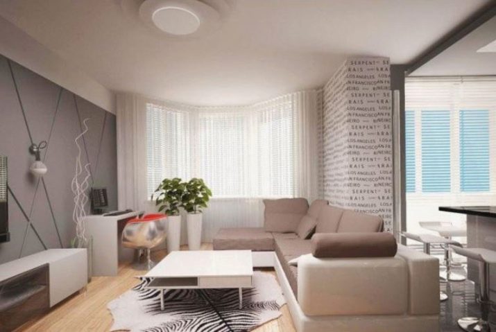 If the room is combined with a balcony or a loggia, they can be used for the installation of compact sofas.