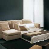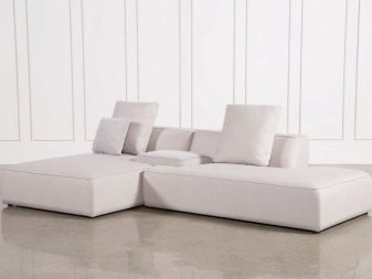 In style high tech the upholstery is necessarily black and white, and modern style implies sofas with auxiliary devices: folding tables, shelves for books and others.