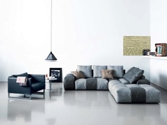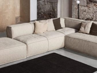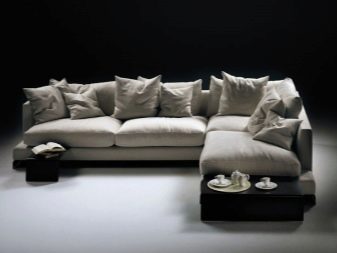 Low-angle corner models differ from standard designs and benefit from their background. The first plus, which I want to immediately note, is their shape - the model, pushed into a corner, takes up less space and has additional sections for storing things in the form of built-in drawers. On such a sofa it is convenient to relax even without a layout. Corner models can be small, so they are perfect for small rooms.