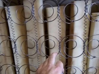 - Then we determine the damaged element and make repairs, depending on the type of spring unit. Either a complete replacement, or selective. With partial replacement, damaged springs are separated by pliers from those standing nearby and new ones are put in their place. Between themselves, the springs are fastened with wire. Remember that for safety, the wire should be bent inside the spring block.