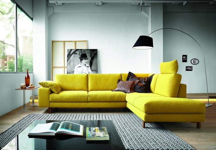 Yellow sofas can be placed in a variety of functional areas: in the living room, nursery, as well as in the dining room, kitchen and even in the bedroom.