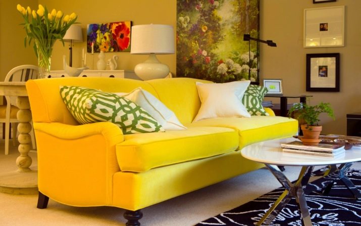 However, in order for this unpleasant effect to appear, there must be a lot of yellow in the interior. Therefore, in the design of the apartment, one sofa in this color will be quite enough.