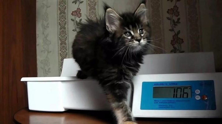 When growing young cubs go to an adult diet, some weight loss is possible. However, by the age of two months, the weight of a young Maine Coon can reach a mark of one kilogram, and sometimes it happens even more.