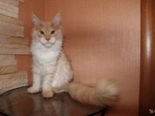 The classic color of red Maine Coons is red solid. So called uniform coat color - a bright brick or saturated orange color. Allowed interspersed white, stripes and streaks on the body, tail, legs and head.