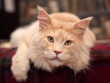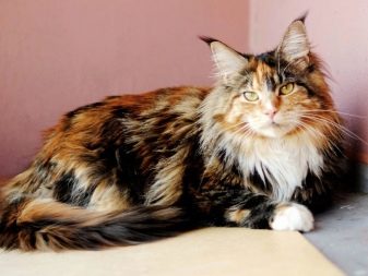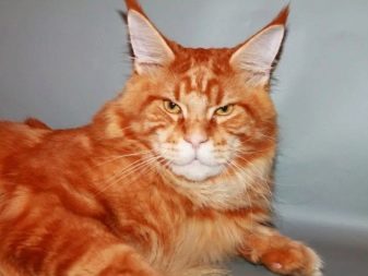 Adult cats of this breed delight in their large size. They are considered the largest among domestic breeds. Large expressive eyes, long mustaches and ears with tassels look quite original. Maine Coons develop slowly, they reach full maturity by 4-5 years. By this age, the weight of a cat is 11-15 kg, and that of a cat is 5-7 kg.