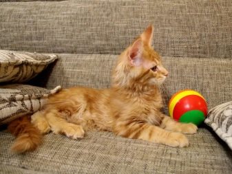 Maine Coons need to maintain an active lifestyle. They are often recommended to walk in the fresh air, arrange entertainment with balls and other toys. Loneliness is not in the best way reflected in the character and appearance of the animal. In the place of his habitat, it is necessary to build a device for sharpening claws and your own recreation area.