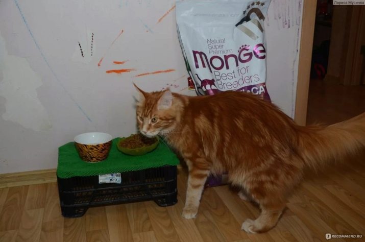 Maine Coon feeds should be selected premium. If preference is given to natural food, then the diet must necessarily include lean meat, vegetables, fruits, cereals and dairy products, sometimes boiled sea fish and eggs are introduced into the diet. Adult Maine Coons usually eat three times as many breeds of other breeds, but not because of the love of gluttony, but because of their impressive size.