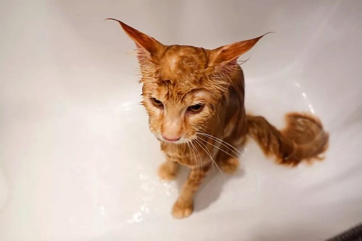 Maine Coon cat is not afraid of water and often splashes with joy when swimming. It should be noted that Maine Coons can communicate not only through meowing. They make sounds like squeaks, trills and something like tweets. They have a well-developed body language, and a blow to their big head means a particularly tender pet attitude.