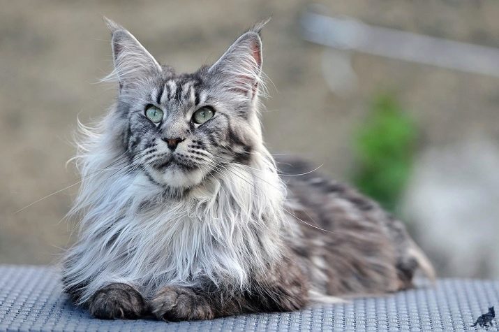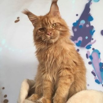 Maine Coons are distinguished from other subspecies and other interesting features. For example, lush frill collars, formed from solid and thick wool, attract particular attention. Such details make the appearance of this unusual cat even more solid, rich. Maine Coon's tail grows no less chic and fluffy.