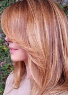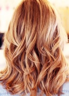 For owners light red hair you should think about caramel, beige, honey and wheat shades.It is unlikely that it will be possible to create platinum and pearl here, since the colored pigment is washed out quite poorly from the hair, and, instead of a noble color, the hair you risk getting unpleasant yellow strands.