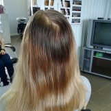 This technique is more complicated than the others, it is important to observe the ratio when connecting the components of the coloring composition. The technique implies mixing dye with corrector and activating cream. To get rid of excess brightness, you should use a colorless corrector.