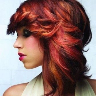- Scarlet staining. Red color in red hair will only add to the entire hairstyle of saturation and brilliance. Strawberry, wine, and crimson shades can perfectly fit here, depending on the color of your natural hair.