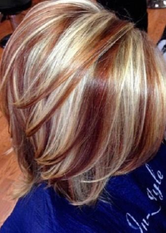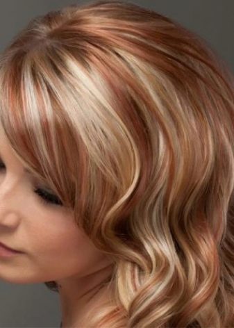 - Still popular highlighting blond hair with selective dyeing of strands in darker colors. Such an image will surely give the overall look more dynamics, can add harmony to the color schemes in your clothes. The colors used in this case: light chestnut, dark red, copper.