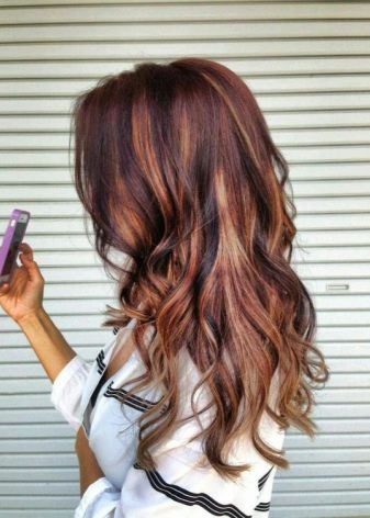 - Dark highlights - Ideal for girls of fall color type (dark eyes, fair skin). For red-haired girls with this color type, rich chocolate and coffee shades are great.