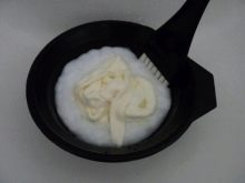 - First prepare the clarifier mixture in a plastic bowl. It is strictly forbidden to use metal utensils and other paint accessories, as this material reacts with an oxidizing agent. The girl must strictly follow the manufacturer's instructions on the ratio of powder and oxidizing agent. If cream paint is used, then it is immediately ready for use.