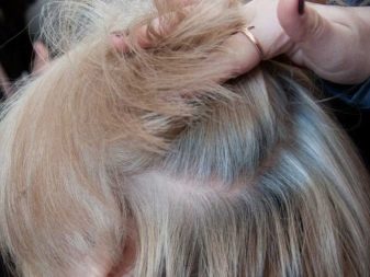 It also happens that gray hair appears in only one area, for example, on a bang or above the temples. Then, professionals first advise to even out the color of the curls with tinting, and only after that proceed to bleaching the strands.