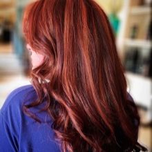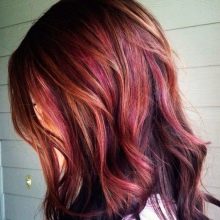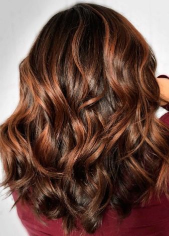- Red. Masters are advised to refer to this type of highlighting only to those young ladies who by nature have dark hair. Here, colors like red, bronze, red or even brick red are most often used. With the help of such scales, you can noticeably revive the dark hair, without spoiling the hair structure with aggressive brighteners.