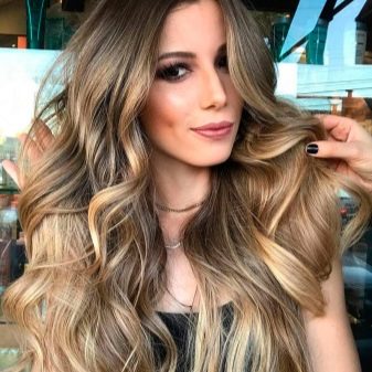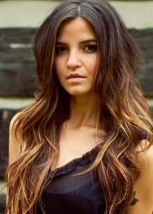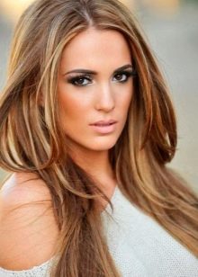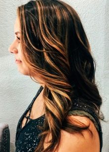 - Luxuriously on a long wavy or straight head of hair looks highlighting made using one or more shades of brown. For example, it can be gentle chocolate back-highlighting.