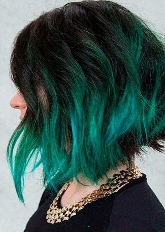 On black short and medium hair, color highlighting looks very interesting. For example, on an elegant black square without bangs, an ombre-like painting with turquoise ends painted to mid-length will look amazing.