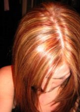 Given the fact that red strands are the most thick, the highlighting process is considered quite special. In the process of painting, you need to be extremely careful and do not keep the dye on your hair for more than the allowed period. In addition, if it is necessary to carry out clarification, it is best to use not conventional means, but more potent ones, where the concentration of clarifier exceeds 12%.