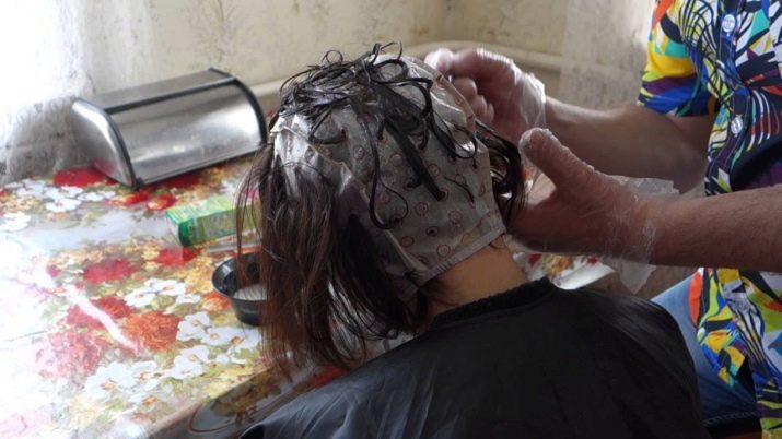 The number of strands that will be dyed depends on how much the girl wants to change. After the desired number of strands is pulled out from under the hat, you can start painting the hair. The process of repainting is the same as regular hair coloring. First of all, you need to prepare a liquid for painting, which will be applied to the hair for a certain time.