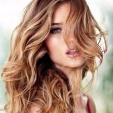 Highlighting on light curls suggests the creation of a feminine, delicate image. In any case, it’s better for the blondes to refuse intense shades, they look too defiant. A great way to refresh the image is to lighten individual strands in several tones, this will not violate the naturalness of the composition.
