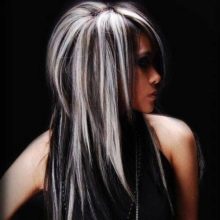 Contrasting hair looks luxurious against a dark long hairstyle.