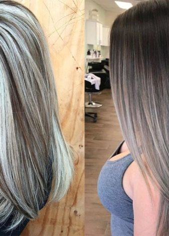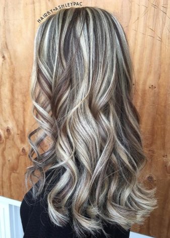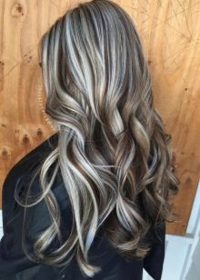 Highlighting on natural brown-haired and burning brunettes is quite difficult to implement and give them the effect of a natural or glare overflow. The selected tone will still be contrasted with the natural color of the hair. An exception can be called dark blond, for him a silver or gray, almost "mouse" shade is selected.
