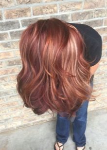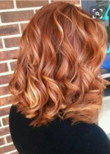 On red curls, the coloring of small locks in golden, wheat, as well as amber and cognac colors will look stylish.