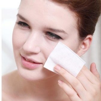 You need to remove makeup in a certain sequence. Wipe your eyes and lips first, and then your entire skin. The cotton sponge should be moistened well, but the product should not drain from it. Conducting on the skin is smooth, without pressure.