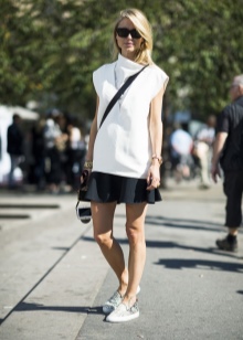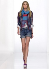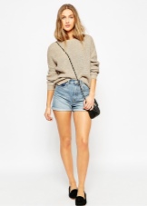 Than an imperfect image, which are based on loafers on a low platform. The fact that these shoes go well with shorts was known to us, and now you can see for yourself. It is on shorts that the main emphasis is made, because they stand out not only in color, but also in a bright edging. In this image, there are classic features that are embodied in a shortened cloak, a sporty style and signs of urban bows.