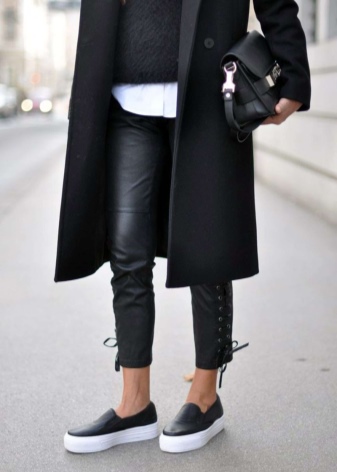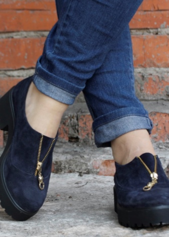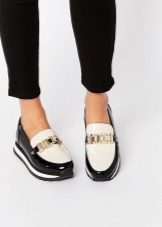 - Moccasins on a platform with a massive sole are suitable for tracksuits, although loafers are not recommended to be worn with similar clothes, but such models are a pleasant exception. Casual style moccasins on a massive platform are also acceptable.