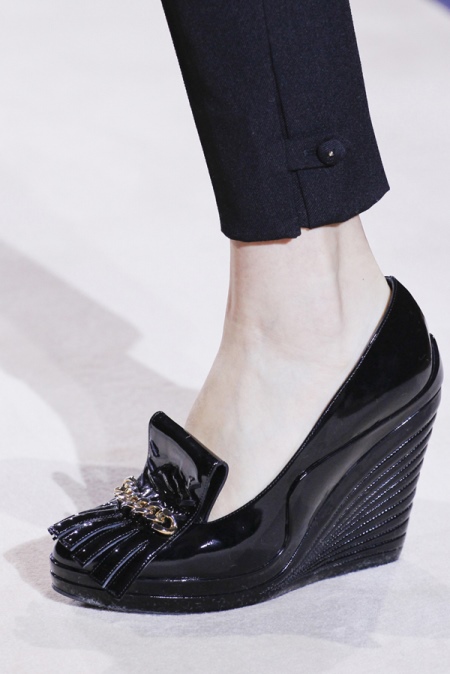 - Wedge loafers have an elegant look and can serve as a replacement for classic shoes. Such models can be present in business images or combined with cocktail dresses.