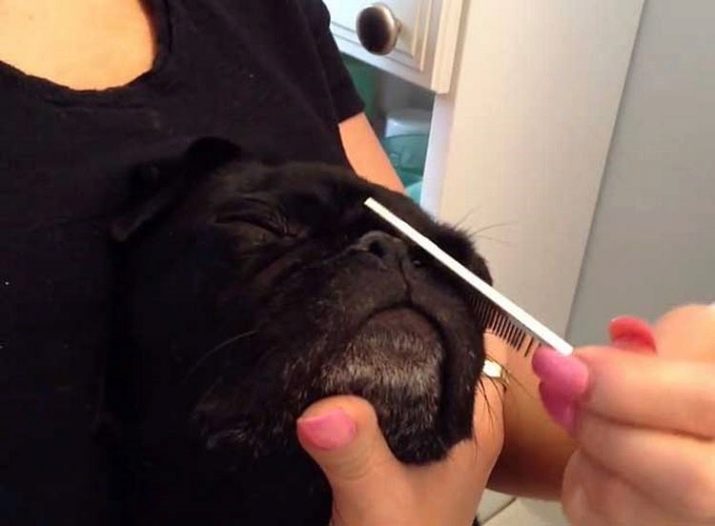 Pugs are not washed too often, it is advisable to do this as they become dirty, otherwise the natural protective layer of the skin and coat will be disturbed. Use special products for dogs when washing, if possible hypoallergenic. After water procedures, pugs are thoroughly wiped and allowed to dry completely in a warm room. Remember that these dogs are prone to colds, drafts in their wet form are contraindicated.